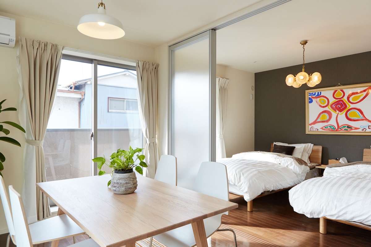 見ての通り、すごく素敵な部屋。海から徒歩圏内のこんな素敵で清潔感あるお部屋を貸切で、一人当たりもかなりお安くお借りすることがきました。予約後はホストと鍵の受け渡しに関してなど、その他の確認事項を直接メッセージでやりとりするのですがお返事も早く、丁寧なので安心して利用できそうです。また泊まった後の感想などは後日公開していきますね。